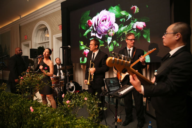Despite a rain shower earlier in the day, many of the guests were able to get out and enjoy the eponymous rose garden before dinner and dancing began– a garden with nearly 700 varieties of roses that continue to thrive in the only surviving New York City garden designed by eminent landscape architect Beatrix Farrand, who did so in 1916.