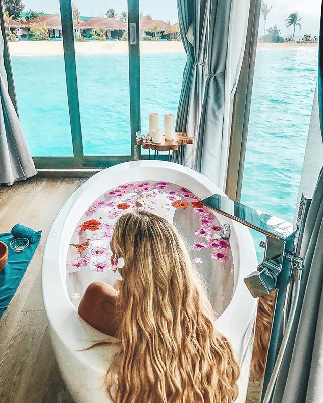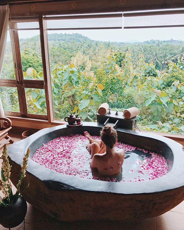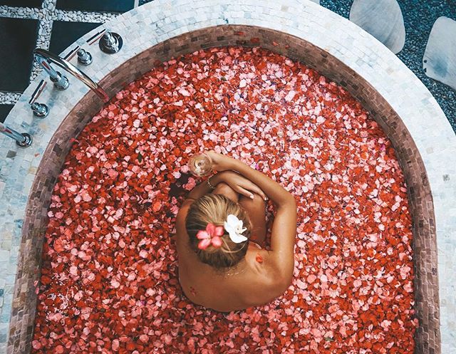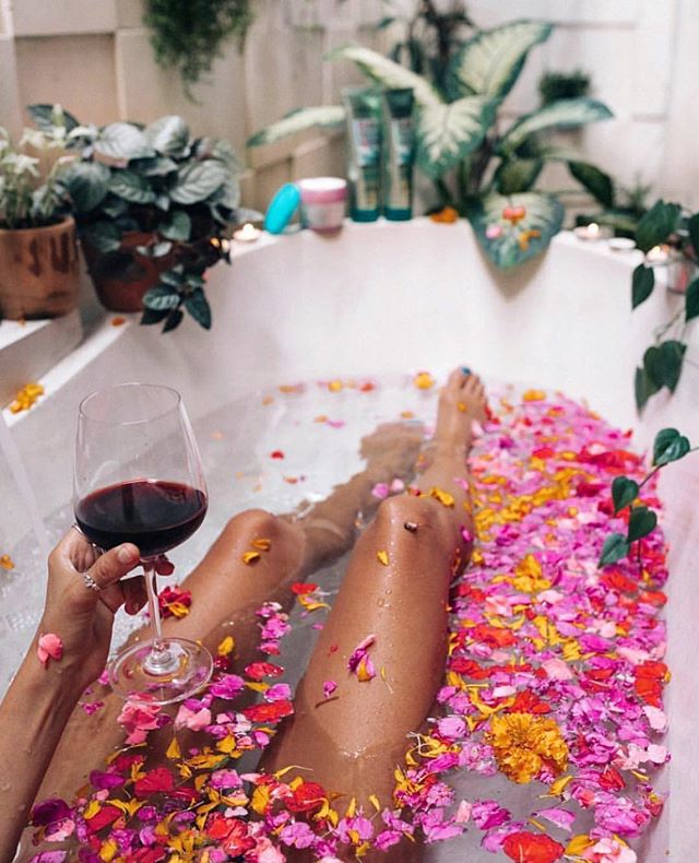Instead of surrounding themselves with candles and reading magazines under a massive pile of suds, people who take floral baths opt for a more minimal experience that focuses on the beauty and wonder of flowers, plants, and the luxurious natural scents that these botanical elements can provide. A basic floral baths involves adding a little milk and non-foaming bath soap to the water (milk softens the skin, while soap cleans) and sprinkling the top of the water with rose petals, peonies, or any other luxurious flower of choice. Use it as an opportunity to meditation, or make it a ritual bath if that’s your jam. In either case, the experience is sure to be beautiful– and that, studies show, has its own health benefits.