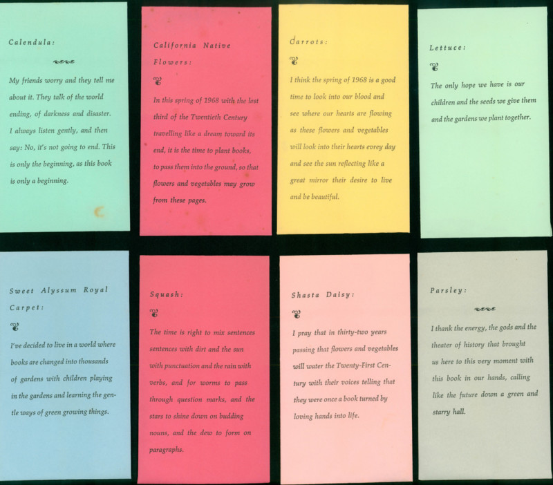 When Richard Brautigan published Please Plant This Book, a collection of eight poems printed on seed packets housed within a folder, he was ensuring that both art and food were accessible to all.