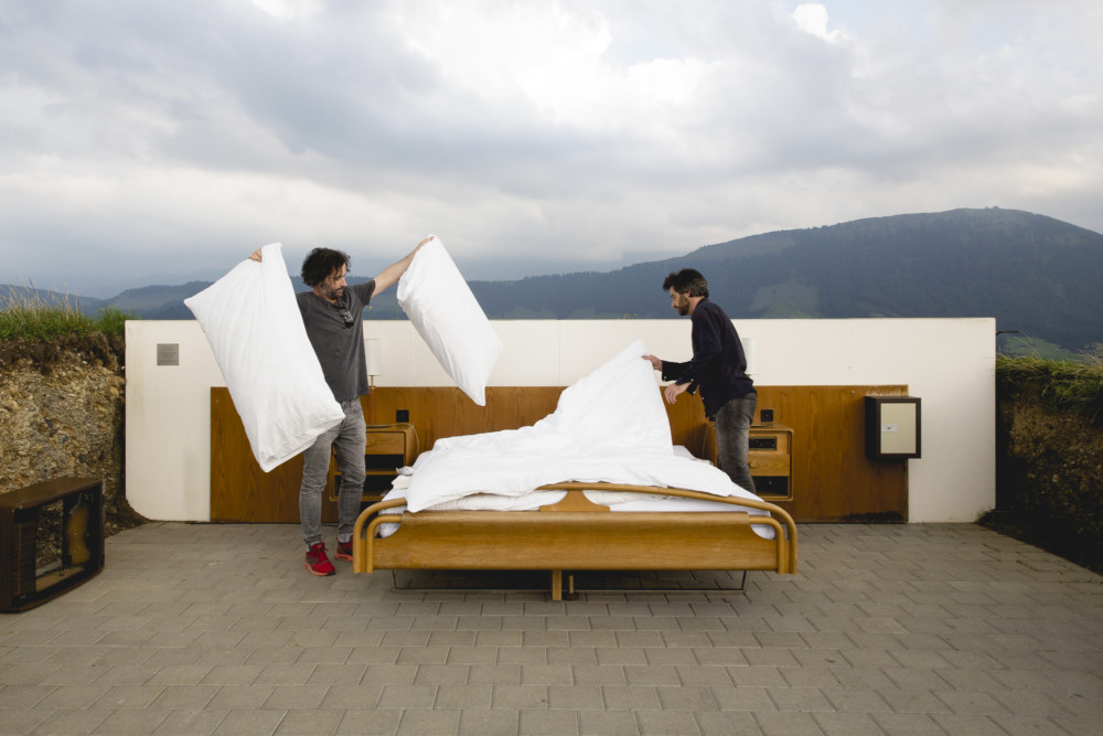 PR: We “bombed” the bunker by installing the hotel room without walls and without a roof in the Swiss countryside. And we made the people from the area the hoteliers.