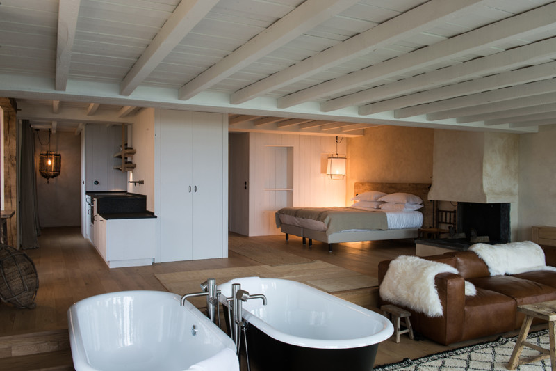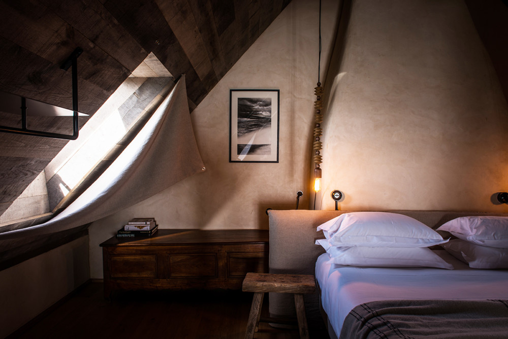 The 17th-century stone buildings are biscuit colored at D’une Île, 20-acre country sanctuary hidden in thick forest in lower Normandy. Here, artists and designers Sofie Sleumer and Michel Mulder have brought a minimalist modern touch to pastoral living: while rural paths lead into woods and prairie, eight individual bedrooms and suites are each more inviting than the other– this is just the place to put up your feet after a day spent walking through the fall foliage. Come dinnertime, an accomplished menu of local and homegrown produce is served alongside an impressive list of natural wines.