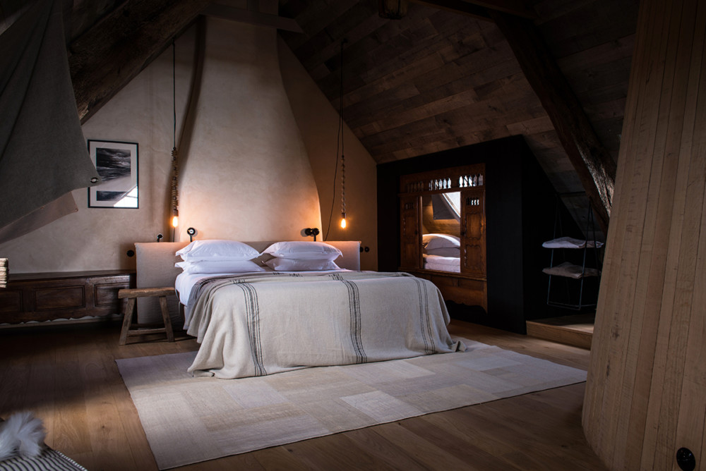 Very chic indeed, the rustic retreat of La Ferme Du Vent overlooks the bay of Cancale and is owned by chef Olivier Roellinger, whose Michelin-starred restaurant Le Coquillage is just a five-minute stroll away. There’s neither Wi-Fi nor TV in these pared-down, wood-and-stone “kleds” (Breton for “wind shelters”)– only wood-burning stoves, light pouring in through the huge framed windows, and views of wild herbs, idle stones, and perhaps even Mont St Michel, which can be seen through autumn mist when the weather is just right (and it often is). City concerns are washed away in the retreat’s Celtic baths, a sanctuary of serenity designed for contemplation. In the evening, a fantastic modern dinner is set out on a weathered wood table in each bedroom.
