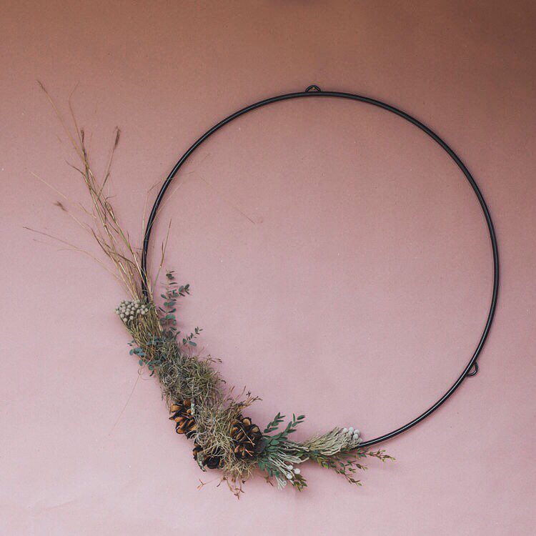 In addition to her own work, DeWitt teaches a variety of day-long workshops on welding and floristry, with Norman in their studio in the Hill Country of Central Texas. In their wreath workshop, participants will spend the first half of the day learning how to weld a ring from steel. Then they’ll style the wreath with florals, learning how to decorate the same piece they’ve just built, and ending the day by hanging up the final pieces for photographs. “The first half of the class is loud and messy and tough from welding,” DeWitt explained. The second part, where the class turns off the loud machines and shifts to floral design, she says, is “meditative”. “You can hear the birds chirping,” she says. “It’s the perfect kind of ying-yang.”