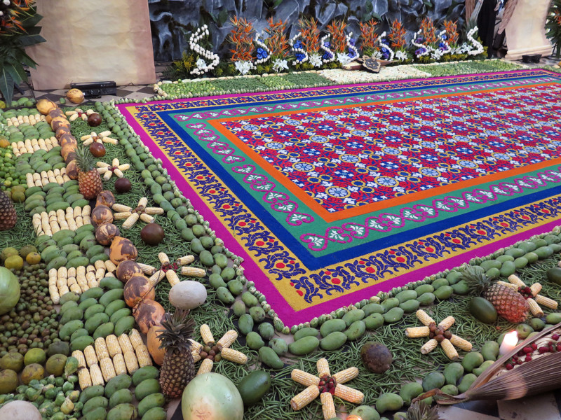 “There is no annual theme– every group does their own thing. My favorites are the organic-looking carpets handcrafted with fruits and vegetables, though the sawdust ones are quite beautiful and colorful,” says Ann Flower, president of Ann Flower Communications, a Los Angeles public relations firm, whose client is Bella Guatemala Travel (BGT).