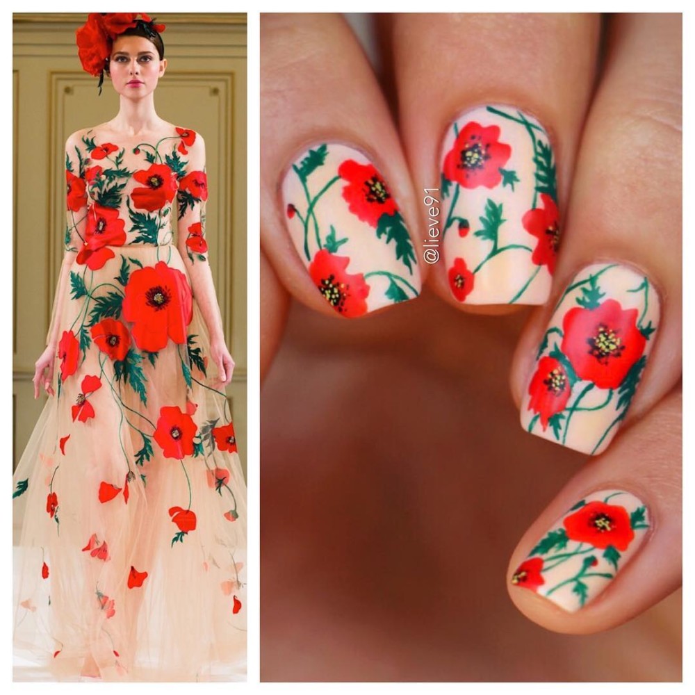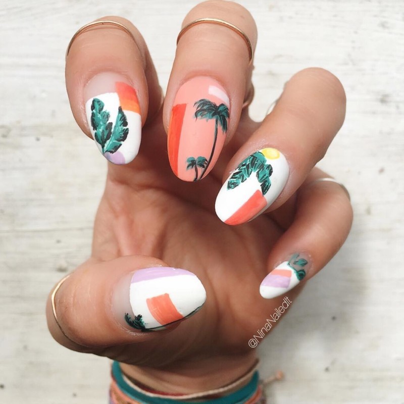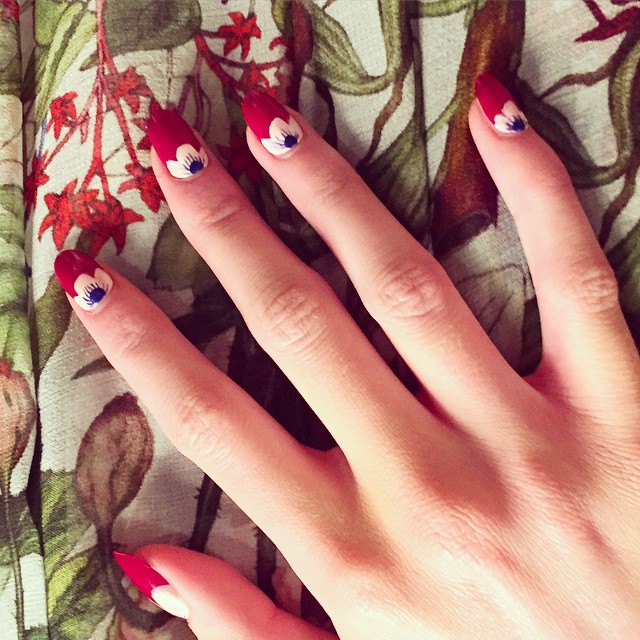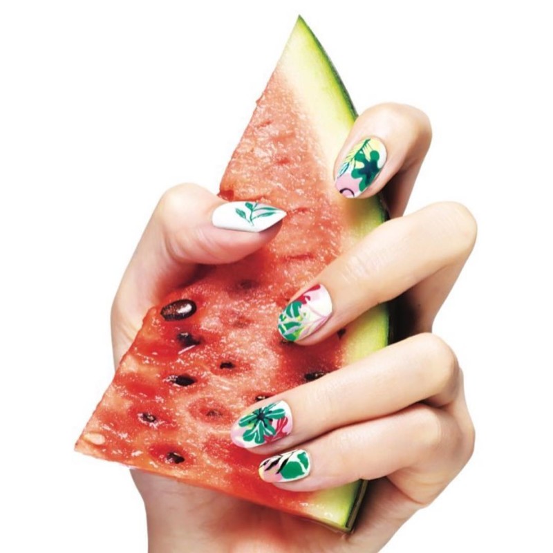 Like botanical makeup, botanical manicures are equal parts fashion statement and artistic exploration– and they are more popular than ever. Part-time nail artists and Instagram sensations alike are looking to everything from poppies to palm trees for inspiration and new patterns to paint across every pointer and pinky they come across. Color-wise, flowers make an excellent muse: floral tones are bright and poppy, connoting spring and the idea of effortless beauty in equal measure. What better way to stay on trend than to mirror the colors of the seasons? Flowers, as ever, do this better than almost any other subject (not that we don’t love celebrity nail caricatures, though.)