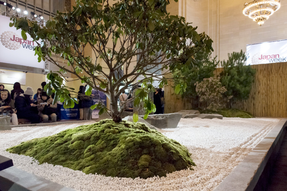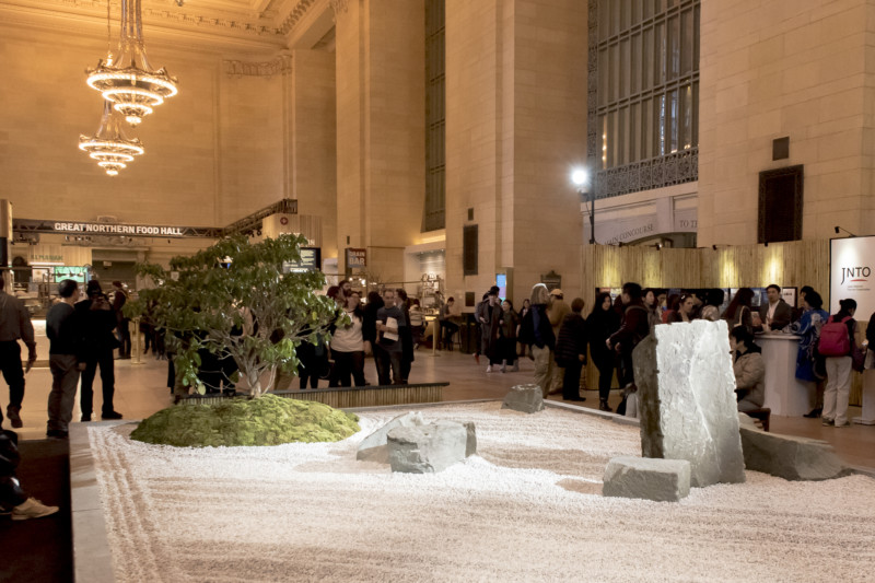 Subway advertising for vacationing in foreign countries has gone up in the age of global travel, with a recent focus on Japan that has compelled several New Yorkers to make Tokyo one of their next big travel destinations. In honor of Japan Week this past Wednesday, Thursday, and Friday, March 8, 9, and 10th, a massive Zen Garden complete with sand, trees and rocks was installed in Grand Central’s Vanderbilt Hall. Designed by Yuri Ugaya, the exhibit was also home to practical zen gardening demonstrations in which Japanese garden designers guided participants through the process of combing their own wave patterns in the garden’s white gravel.